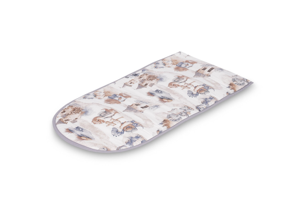 A kivehető matrac kétoldalas: egyik oldala elegáns, puha velvet anyag, a másik pedig finom, 100% pamut, amely kíméletes a baba érzékeny bőréhez. A perem antiallergén szilikon töltettel készült, így maximális komfortot és biztonságot nyújt.