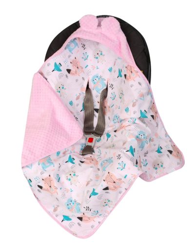 Bármilyen babahordozóba beköthető puha takaró. Kívül puha minky anyag, belül pedig 100% pamut bélés biztosítja a baba számára a kellemes érzést és kényelmet.