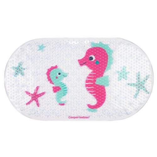 Praktikus, csúszásmentes LOVE&SEA fürdőszőnyeg tapadókorongokkal, amely gyermekfürdőkádakban, nagyméretű fürdőkádakban és zuhanyzókban való használatra szolgál. Megakadályozza a baba megcsúszását fürdés közben. Kiváló minőségű gumiból készült. A szőnyeg vonzó kialakítása ösztönözni fogja gyermekét a fürdésre.
