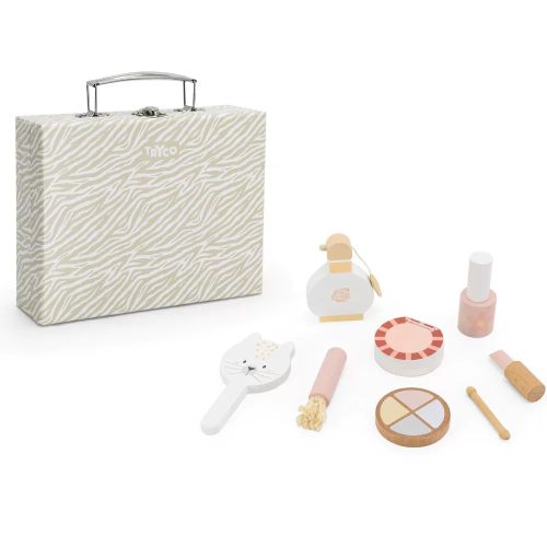 Fából készült smink készlet a feledhetetlen szerepjáték élményéért, amelyben a kislányok is úgy sminkelhetnek, mint anya.