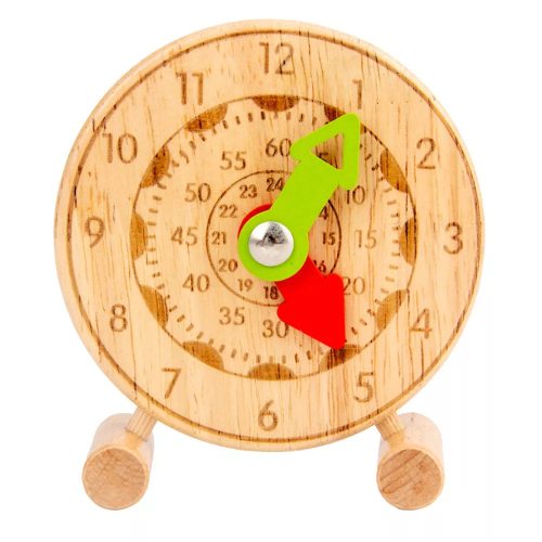Ez a fából készült tanulóóra ideális eszköz a gyermekeknek, hogy megtanulják az időt az analóg óra használatát. Egyszerű és szórakoztató módon segít a gyerekeknek elsajátítani az idő felismerését.
