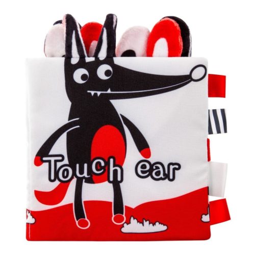 A könyv több oldallal és erősen kontrasztos mintákkal rendelkezik, amelyek segítik a baba figyelmének, fókuszálási képességének és vizuális érzékelésének fejlődését. Az egyszerű, látványos képek – például állatok formái, mint itt a farkas – ideálisak az első „könyvélményekhez” és az érzékszervi játékhoz.