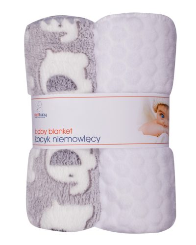 2 db-os puha pléd szett, amely méretének köszönhetően nem okoz gondot a pici számára. Ideális babakocsiba, kiságyba, piknikezéshez, stb.