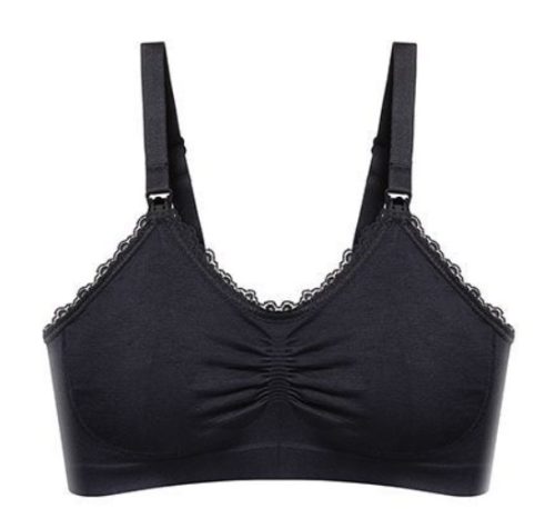 Kényelmes szoptatós melltartó, fekete színben. Antibakteriális bőrvédő anyagból készült. A csipke elegánssá és dekoratívvá teszi a melltartót.